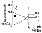 选择题 在温度和容积不变的密闭容器中,A气体与B气体反应生成C气体。反应过程中,反应物与生成物的浓度随时间变化的曲线如下图,则下列叙述正确的是