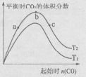 CaS(s)+3CO2(g)的△H=-394kJ/mol,即该反应是放热反应,升高温度,平衡向逆反应方向移动,CO2体积 分数降低,故T2低于T1。本题所属考点:【化学平衡】