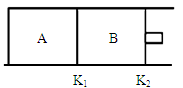 填空题 如图所示,K1固定不动,K2可自由移动,A、B两个容器中均发生反应:X(g) + 3Y(g)