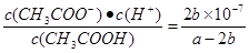 (5)一定条件下甲醇与一氧化碳反应可以合成乙酸。通常状况下,将amol/L的乙酸与bmol/LBa(OH)2溶液等体积混合,反应平衡时,2c(Ba2+)=c(CH3COO-),用含a和b的代数式表示该混合溶液中乙酸的电离常数为_________________________。