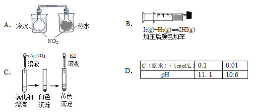 试题分析:勒沙特咧原理用来解释可逆反应的平衡移动问题。A、二氧化氮与四氧化二氮之间存在平衡,温度变化对平衡有影响,错误;B、碘蒸汽与氢气反应生成HI的反应是气体的物质的量不变的可逆反应,压强的变化对平衡无影响,不能用勒沙特列原理解释,正确;C、氯离子与银离子反应产生白色氯化银沉淀,再加入KI后,碘离子与银离子反应生成AgI的黄色沉淀,使氯化银的沉淀溶解平衡正向移动,最终白色沉淀转化为黄色沉淀,错误;D、氨水的浓度是0.1mol/L时,pH=11.1,不是13,说明氨水是弱碱溶液,稀释10倍后,pH未变为10.1,说明加水促进一水合氨的电离,pH降低程度减弱,错误,答案选B。