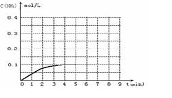 | (3)反应达到平衡后,第5分钟末,保持其它条件不变,把容器的体积缩小为原来的一半,则平衡________________移动(填“向逆反应方向”、“向正反应方向”或“不”),化学平衡常数________(填“增大”、“减小”或“不变”)。 (4)在第5分钟末,将容器体积缩小为原来的一半后,若在第8分钟末达到新的平衡时(此时NH3的浓度约为0.25mol·L-1)。请在上图中画出第5分钟末到平衡时NH3浓度的变化曲线。