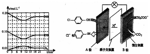 ,负极反应式:CH3COO-+2H2O-8e-=2CO2↑+7H+,A区溶液pH从4变到1,此时n(H+)=1×10-1mol,根据得失电子守恒,m(CH3COONa)= 91Exam.org0.1×82/4=2.05g