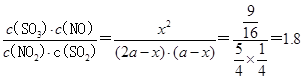 平衡时NO2(g)与SO2(g)的体积比为5:1,由以上三段式知,(2a-x):(a-x)=5:1,故x=