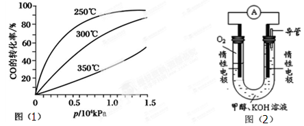 (3)依据燃烧的反应原理,合成的甲醇可以设计如图(2)所示的原电池装置。
