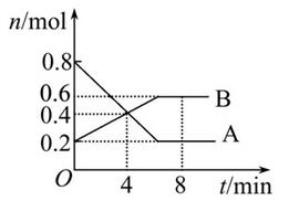 (3)第4min末时A、B的物质的量浓度依次为________(1分)、________(1分)。第4 min时,正、逆反应速率的大小关系为:v(正)________v(逆)(填“>”、“<”或“=”,下同)(2分),第8 min时,v(正)________v(逆)(2分)。