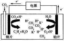 (3)根据电子的移动方向可知,铜极为阴极,铂极为阳极,阴极是二氧化碳得到电子与氢离子结合为乙烯和水,阳极是水失去电子,生成氧气和氢离子,所以总反应是二氧化碳与水反应生成乙烯和氧气,化学方程式是2CO2+ 2H2O =C2H4+3O2;