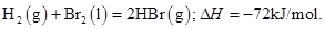 蒸发1mol Br2(l)需要吸收的能量为30kJ,其它相关数据如下表: