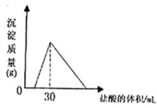 (4)将一定质量的钠铝合金置于水中,合金全部溶解,得到20mol,pH=14的溶液,然后2mol/L盐酸滴定,可得沉淀质量与消耗的盐酸体积关系如下图:则反应过程中产生氢气的总体积为 L(标准状况)