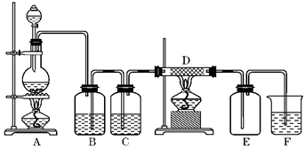 实验题 (共18分)如图中,A是氯气的发生装置,B、C是净化气体的装置,D中装铁丝网;来源:91考试网 91ExaM.org反应后E的底部有棕色固体聚集;F是吸收多余气体的装置。