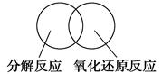 (2)可用图示的方法表示不同反应类型之间的关系。如分解反应和氧化还原反应可表示为下图。请在下面的方框中画出离子反应、置换反应和氧化还原反应三者之间的关系。