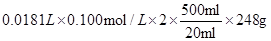 (6)根据滴定管中液面可知,滴定前读数0.00ml,滴定后的读数数18.10ml,所以消耗碘的标准溶液体积为18.10mL。根据方程式可知硫代硫酸钠的质量是