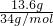 =0.3mol,②3.01×1023个HCl分子的物质的量为0.5mol,③13.6g H2S 的物质的量为