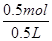 =0.5mol,其物质的量浓度为