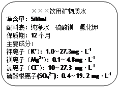 (5)右图是某品牌饮用矿泉水标签的部分内容。请认真阅读标签内容后计算。