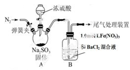 实验题 某研究小组为探究SO2和Fe(NO3)3溶液的反应的实验。设计了如下图所示装置进行实验.已知:1.0 mol/L的Fe(NO3)3溶液的pH=1