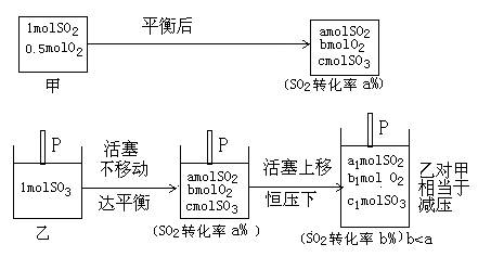 2SO3(g);ΔH<0。 向甲容器中充入1molSO2和0.5molO2,向相同容积的乙容器中充入1molSO3。若甲容器保持容积不变,乙容器保持压强不变,分别达平衡,下列说法不正确的是: