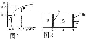 (3)如图2所示,保持温度不变,在一定反应条件下,将2molSO2和1molO2加入甲容器中,将4molSO2和2molO2加入乙容器中,隔板K不能移动。此时控制活塞P,使乙的容积为甲的2倍。
