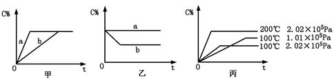 填空题 (6分)如下图,甲、乙、丙分别表示在不同条件下可逆反应: