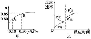 1 mol O2置于10 L体积可变的密闭容器中,反应达平衡后,SO2的平衡转化率(α)与体系总压强(p)的关系如图甲所示。则下列说法正确的是