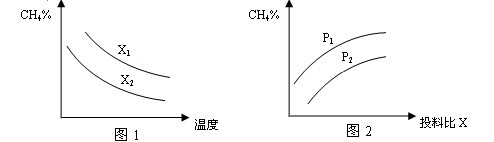 ②根据方程式可知,该反应是体积增大的,所以在投料比相同的条件下,压强越大,甲烷的转化率越小,则甲烷的含量越高,所以根据图 2可知,P2<P1。