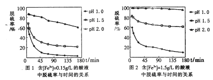 (5)科学研究表明,脱硫率与Fe3+浓度、pH关系如图1、2。