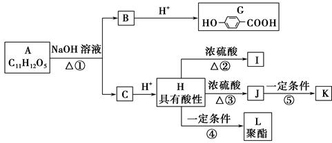 5、填空题 已知某芳香族化合物A的水溶液显酸性,遇FeCl3不显色,可发生下列转化(如图所示)。其中I为五元环状化合物;J可使溴水褪色;I和J互为同分异构体;K和L都是医用高分子材料。