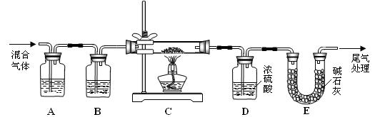 3、实验题 (12分)全世界每年被腐蚀损耗的钢铁约占全年钢铁产量的1/10,而在潮湿空气中发生吸氧腐蚀是钢铁腐蚀的主要原因。(1)在潮湿空气中,钢铁发生吸氧腐蚀转化为Fe(OH)2的电池反应方程式为??? ▲???。(2)已知草酸(H2C2O4)分解的化学方程式为:H2C2O4CO↑ + CO2↑ + H2O,下列装置中,可用作草酸分解制取气体的是??? ▲???。(填字母)(3)某实验小组为测定铁锈样品的组成(假定铁锈中只有Fe2O3·nH2O和Fe两种成份),利用草酸分解产生的CO和铁锈反应,实验装置如下图所示。①为得到干燥、纯净的CO气,洗气瓶A、B中盛放的试剂分别是??? ▲???、??? ▲???。②在点燃酒精灯之前应进行的操作是:(a)检查装置气密性;(b)?? ▲???。③准确称量样品的质量10.00 g置于硬质玻璃管中,充分反应后冷却、称量(假设每步均完全反应),硬质玻璃管中剩余固体质量为8.32 g,D中浓硫酸增重0.72 g,则n =??? ▲??。④在本实验中,下列情况会使测定结果n偏大的是??? ▲???。(填字母) a.缺少洗气瓶B?? b.缺少装置E?? c.反应后固体是铁和少量Fe2O3·nH2O