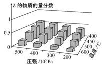 cZ(g),随压强增大,Z的物质的量分数减小,故平衡正向移动,故a+b>c,随温度降低Z的物质的量分数减小,故正向为放热方向,故ΔH<0,故A项正确;本题选A。