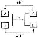 4、填空题 (10分)A、B、C、D分别是由两种短周期元素组成的常见微粒(或粒子),这四种微粒中均含有相同数目的电子,且共含有三种元素。其中A中含有5个原子核,它们之间有如下的反应关系: