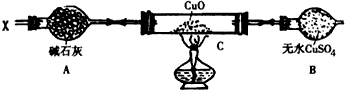 当氮的某种气态氢化物(X)缓缓通过灼热的氧化铜时,观察到氧化铜由黑色变成了红色,无水硫酸铜变成蓝色,生成物中还有一种无污染的气体Y;将X通入红热的CuO燃烧管完全反应后,消耗0.01 mol X,测得B装置增重0. 36 g,并收集到0.28 g单质气体Y。
