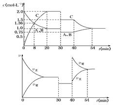 4、选择题  某密闭容器中充入等物质的量的气体A和B,在一定压强和温度下发生反应:A(g)+xB(g)?2C(g),达到平衡后,只改变反应的一个条件,测得容器中物质的浓度、反应速率随时间的变化如下图所示。下列说法中正确的是(  )