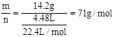 (5)有一种气体的质量是14.2g,在标准状况下的体积是4.48L,则该气体的摩尔质量为 g/mol。
