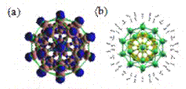 (3)中美科学家合作发现钙和锶在C60上吸附很强,可以均匀地覆盖在C60表面上,形成M32C60。非常适于实际应用。 Ca32C60上可吸附至少92个氢分子(如图)。