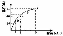 本题解析:(1)根据图像可知,当气体的体积达到60ml时,就不再发生变化,所以实验时放出气体的总体积是60ml。