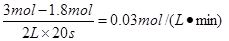 3B(g)+C(g),若反应物在前20s由3mol降为1.8mol,则前20s的平均反应速率为