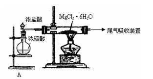 (2)右图是该校研究性学习小组设计进行过程③的实验装置图。其中装置A的作用是???????????????。若要验证所得无水MgCl2中不含NaCl,最简单的操作方法是?????????????????。