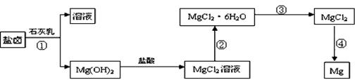 1、填空题 镁及其合金是一种用途很广的金属材料,目前世界上60%的镁是从海水中提取的。某学校研究性学习小组从海水晒盐后的盐卤(主要含Na+、Mg2+、Cl-、Br-等)中模拟工业生产来提取镁,主要过程如下:回答下列问题: