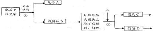 5、实验题 火柴是人们常用的生活用品,某兴趣小组为验证日常生活用的火柴头上含有KClO3、MnO2、S等物质,设计了以下系列实验,并回答下列各题。