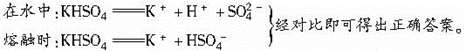 本题解析:KHSO4为强电解质,但由于形成该物质时,原子间结合形式不同,K+与HSO4-是以离子形式结合,而H+与SO42-间是以共用电子对形式形成。故在不同条件下电离形成的离子不同。
