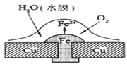 3、选择题 铜板上铁铆钉处的吸氧腐蚀原理如右图所示,