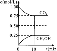 1.在一定温度下的2L固定容积的密闭容器中,通入2 molCO2和3mol H2,发生的反应为:CO2(g)+3H2(g)CH3OH(g)+H2O(g),△H=-akJ·mol-1(a>0), 测得CO2(g)和CH3OH(g)的浓度随时间变化如图所示。