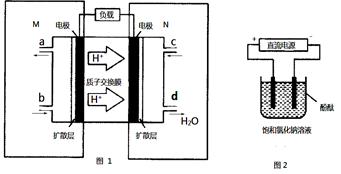 ②用上述电池做电源,用图2装置电解饱和食盐水(电极均为惰性电极),则该电解反应的总反应的离子方程式为:                                           。假设溶液体积为300mL,当溶液的pH值变为13时(在常温下测定),理论上消耗甲醇的质量为______________(忽略溶液体积变化)。