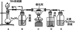 ④实验结束后,若装置D增加的质量为m g,装置E中产生白色沉淀的质量为n g,则此条件下二氧化硫的转化率是 (用含字母的代数式表示,不用化简)。