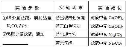 (3)某同学设计如下表所示的实验方案,探究(2)所得 滤液中可能含有的物质是否存在,请你帮他完善实验方案。