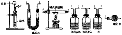 ②试验装置用下列所有仪器连接而成,按氢气流方向的连接顺序是(填入仪器接口字母编号):