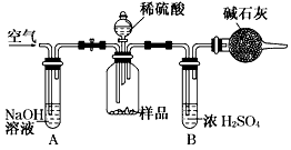 (3)把一定质量的样品和足量的稀硫酸反应,采用如图所示装置,通过称量反应前后盛有碱石灰的干燥管质量,利用其质量差求算样品的纯度。