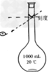 (4)为检验精盐纯度,需配制1000mL.0.2?mol/L?NaCl(精盐)溶液,若定容时观察液面仰视(如图所示),会造成所配制的溶液浓度(填偏高或偏低?)________________。