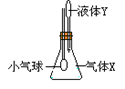 2、选择题 在图示装置中,将液体Y滴入瓶中并摇动,一会儿小气球胀大。则气体X与液体Y