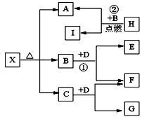 已知X是一种酸式盐,H是常见金属单质,F、I是常见非金属单质,D为淡黄色固体,E、G都是工业上重要的碱性物质,A物质可做耐火材料。它们有如图所示的转化关系。